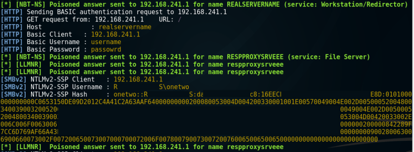 If the victim is asking for an unknown web hostname, we can actually respond to the request and greet the victim with a basic authentication HTML web page that is built by default in the functionalities of Responder.
