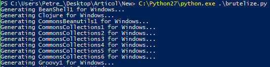 As there is no way to know for sure which payload (gadget) will work, I had to automate the process. I wrote a quick and dirty Python script that will generate an Intruder-friendly file containing all the payloads. I kept a few things in mind: