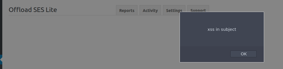 The WP Offload SES Lite WordPress plugin <1.4.5 did not escape some of the fields in the Activity page of the Administrator dashboard, such as the email’s id, subject, and recipient, which could lead to Stored Cross-Site Scripting issues when an attacker can control any of these fields, for example, the subject of a contact form. The XSS will be executed in the context of a logged-in Administrator viewing the Activity tab of the plugin.