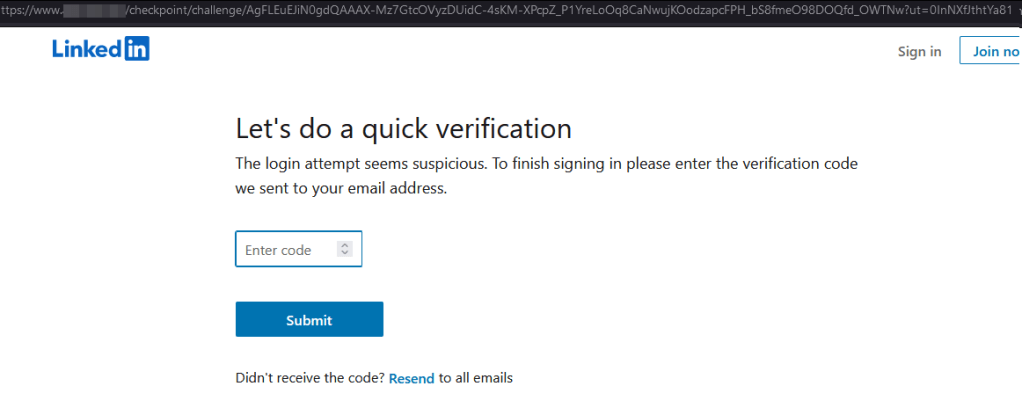 By visiting the generated URL we’ll be presented the LinkedIn login page.