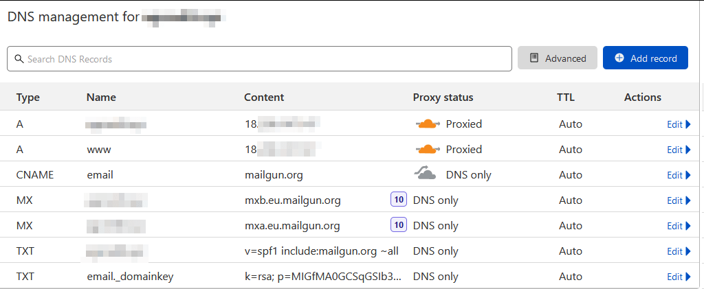 Setting up Cloudflare, Mailgun and DNS records