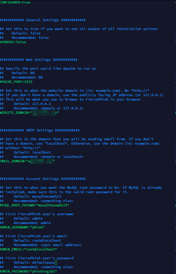 Save the config file, re-run the CURL command and wait for 5 to 10 minutes for FiercePhish to be installed.