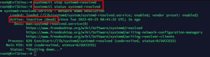 The above two steps are mandatory as EvilGinx has its own built-in DNS server and it would be in conflict with systemd if not stopped. Resolv.conf file needs to be changed in order to switch the DNS resolver, as systemd would be stopped.