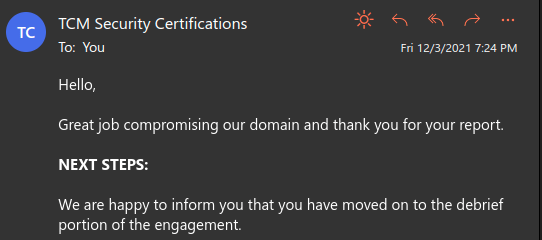 After you cracked the Domain Controller, gained Domain Admin, and are confident that you identified almost all issues, the next step requires you to send a detailed report containing your findings. The report should be professionally written, and if you have never written a report before, don’t worry, TCM provides you with a template that you can use to document your findings. My report was 67 pages long, containing detailed information about the vulnerability, the affected assets, and recommendations for the client to fix the discovered issues. It took me almost 8 hours, including formatting, and that was because I had the descriptions, risks, and recommendations of the majority of issues from my day-to-day job.