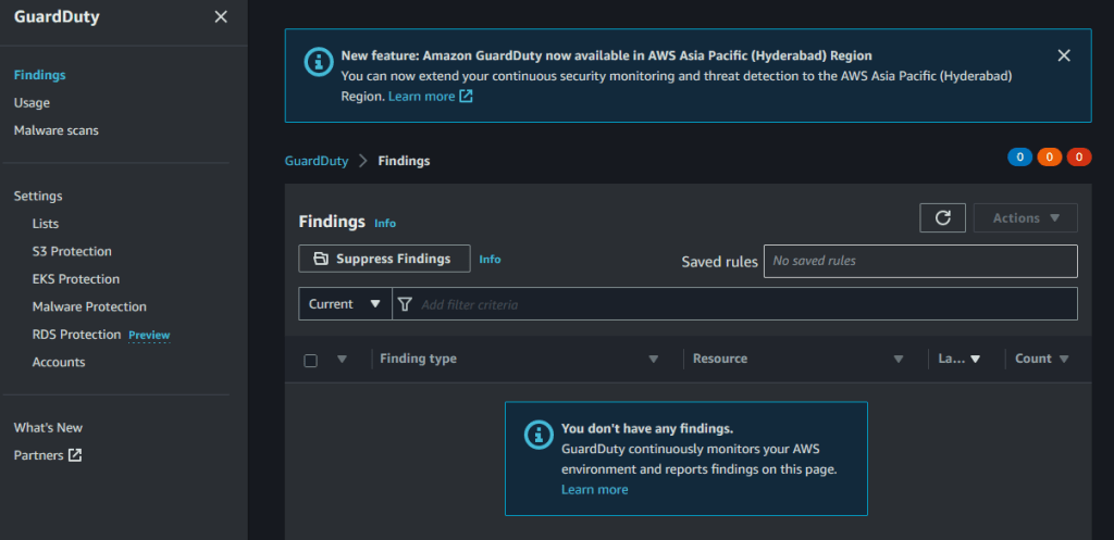 In turns out that GuardDuty doesn’t flag the activity, which is a good thing for us. I find this weird, especially for the private EC2 instance.