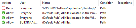 On this blog the focus will be on AppLocker. AppLocker has three primary rules categories that can be combined: