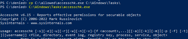 Update the GPO, and try copying a well-known .exe file to another path than the ones allowed. It can be noticed that it’s not possible to run it.