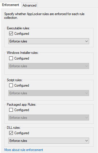 By switching back to the Enforcement tab a new option regarding DLL can be observed.
