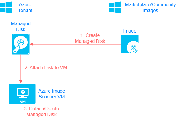 - A Managed Disk created from a community image can only be used and attached to a VM within the same region as the community image. This Azure restriction means that you need to deploy a VM in each region to scan all community images. This restriction only applies to community images, it does not apply to marketplace images.